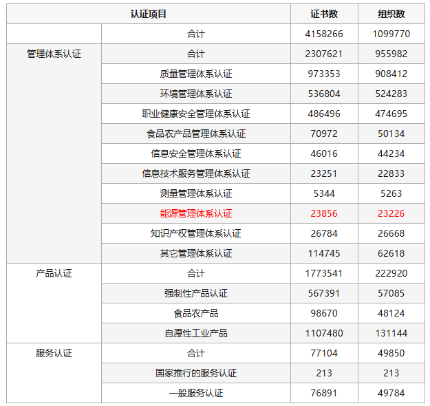 从全国认证认可信息服务平台可见,截至2024年12月,全国共颁发有效认证证书406万张,获证企业108万家。相比年初,能源管理体系认证证书数量增长最为显著,同比增长43.19%。详情如下: